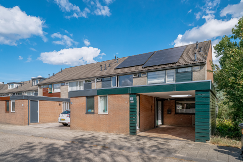 Je komt bij het betreden van de woning binnen in de hal. Hier zijn de meterkast en het toilet gesitueerd, de trap naar boven, een trapkast en de deur naar de keuken en woonkamer. De dichte keuken is voorzien van een gaskookplaat, oven, afzuigkap, koel-/vriescombinatie en aansluiting voor de wasmachine. De woonkamer heeft een grote raampartij en is daardoor heerlijk licht.